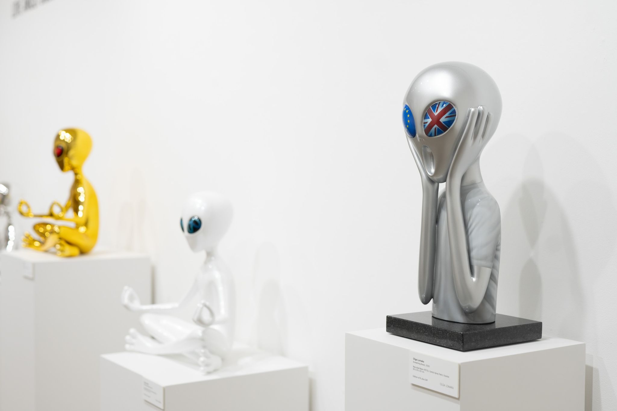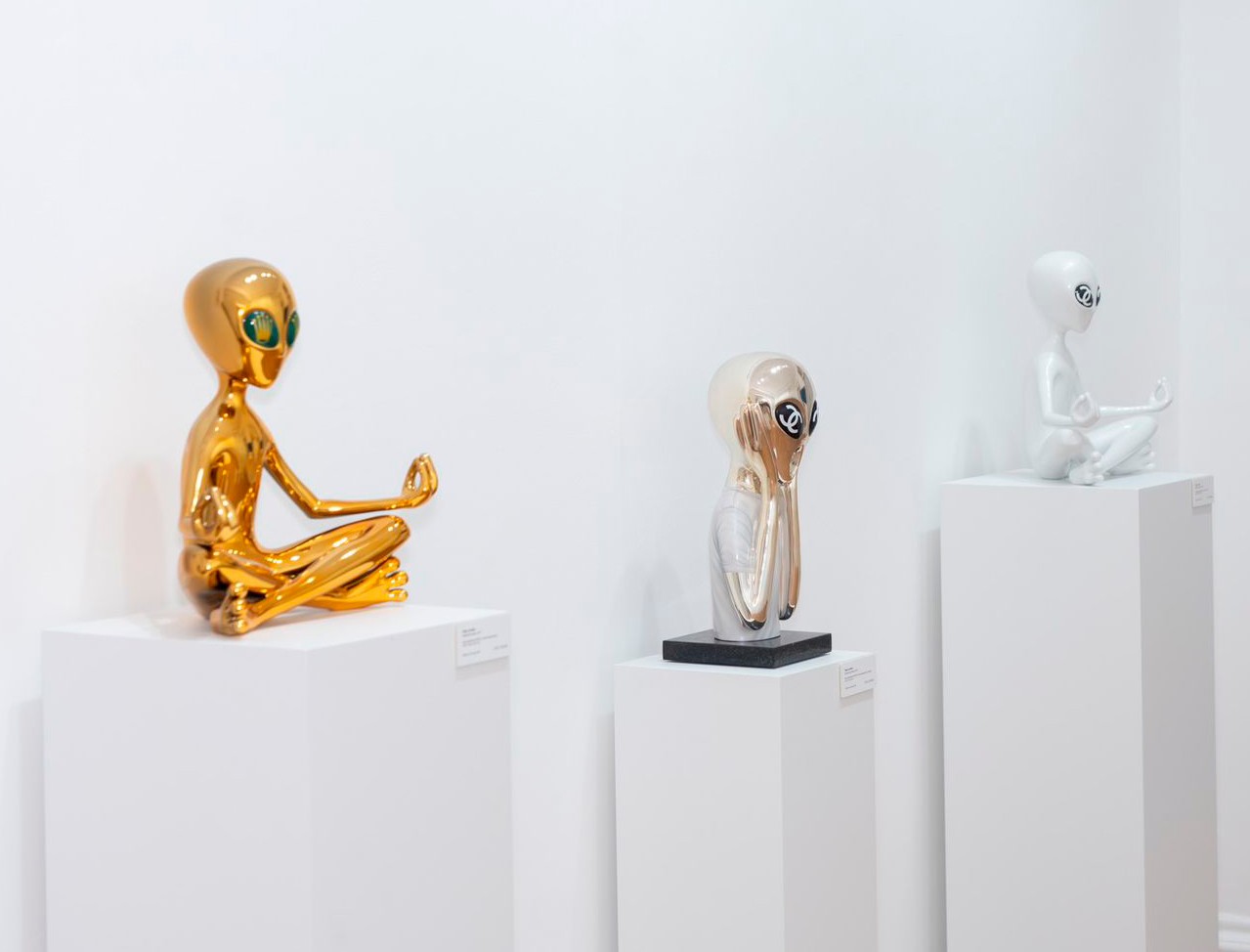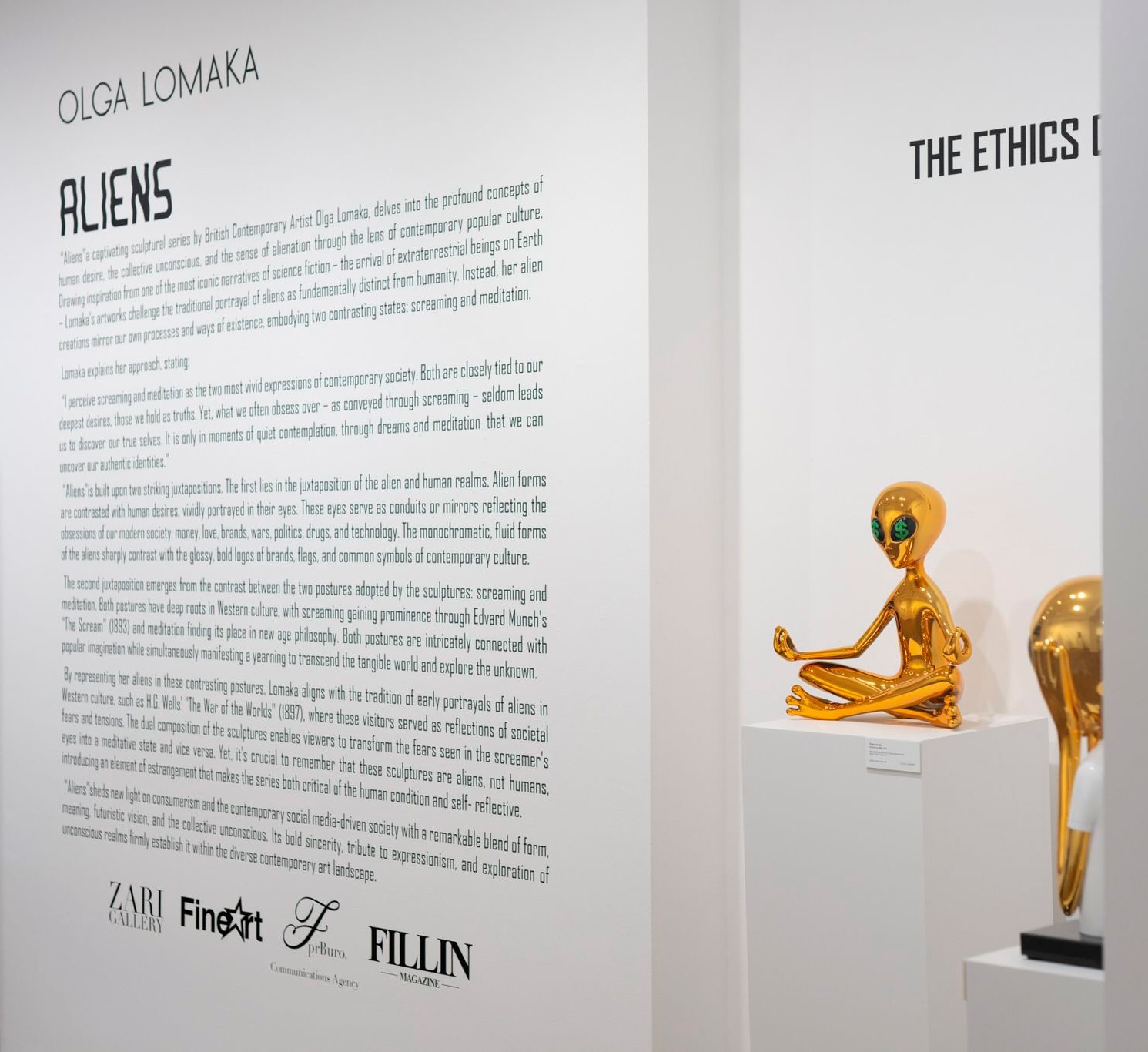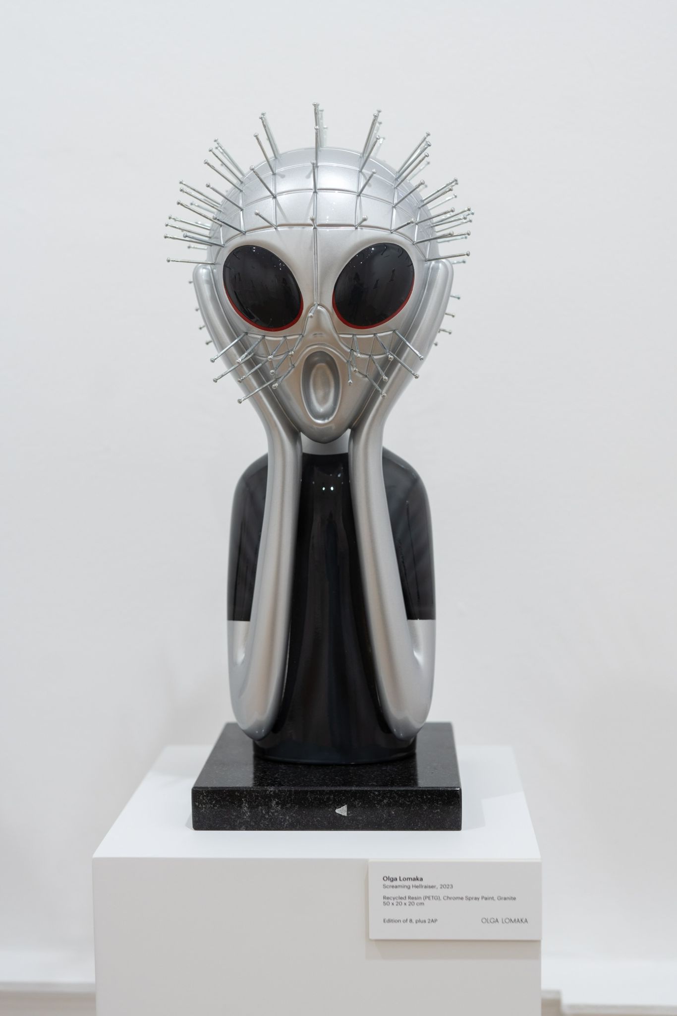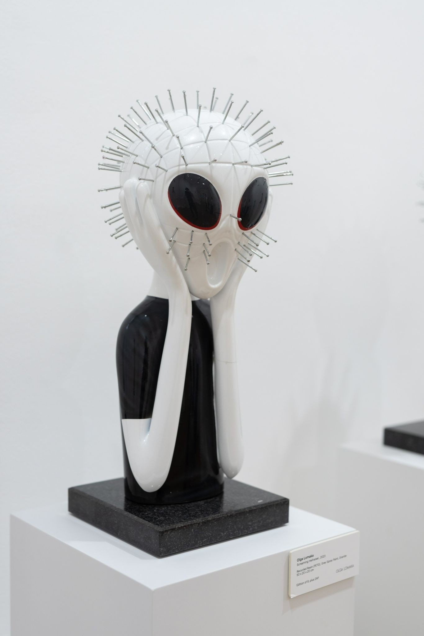 “Aliens” a captivating sculptural series by Olga Lomaka, delves into the profound concepts of human desire, the collective unconscious, and the sense of alienation through the lens of contemporary popular culture. Drawing inspiration from one of the most iconic narratives of science fiction — the arrival of extraterrestrial beings on Earth — Lomaka’s artworks challenge the traditional portrayal of aliens as fundamentally distinct from humanity. Instead, her alien creations mirror our own processes and ways of existence, embodying two contrasting states: screaming and meditation.