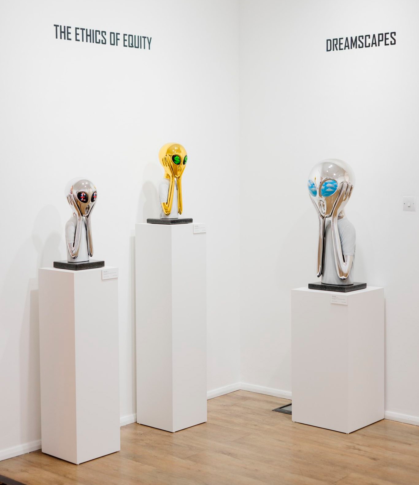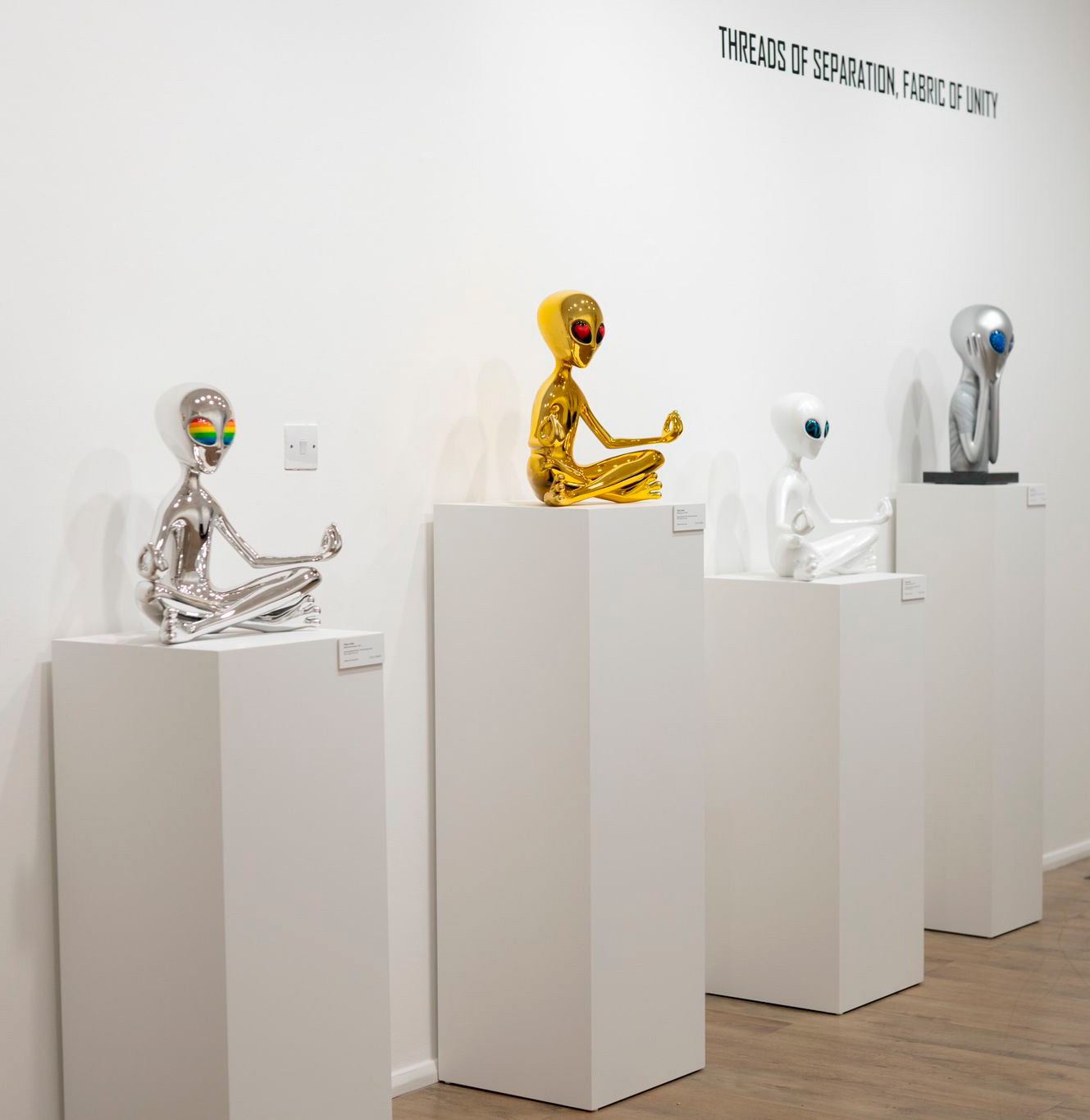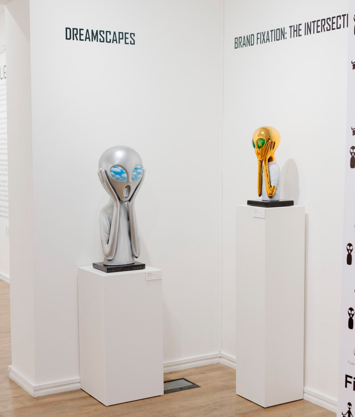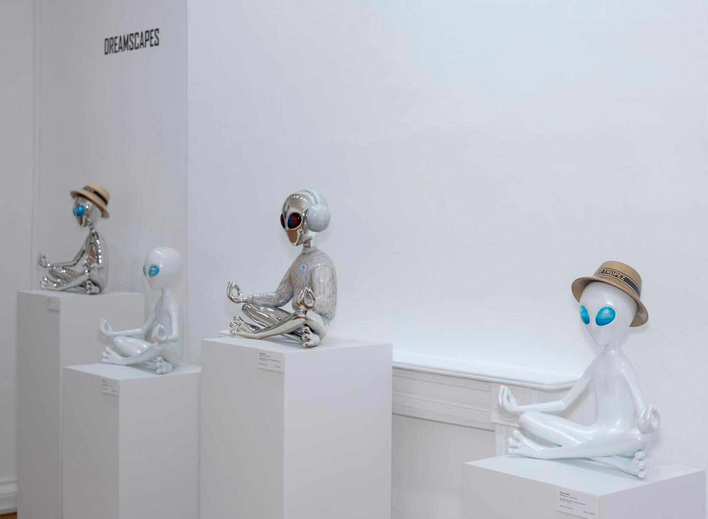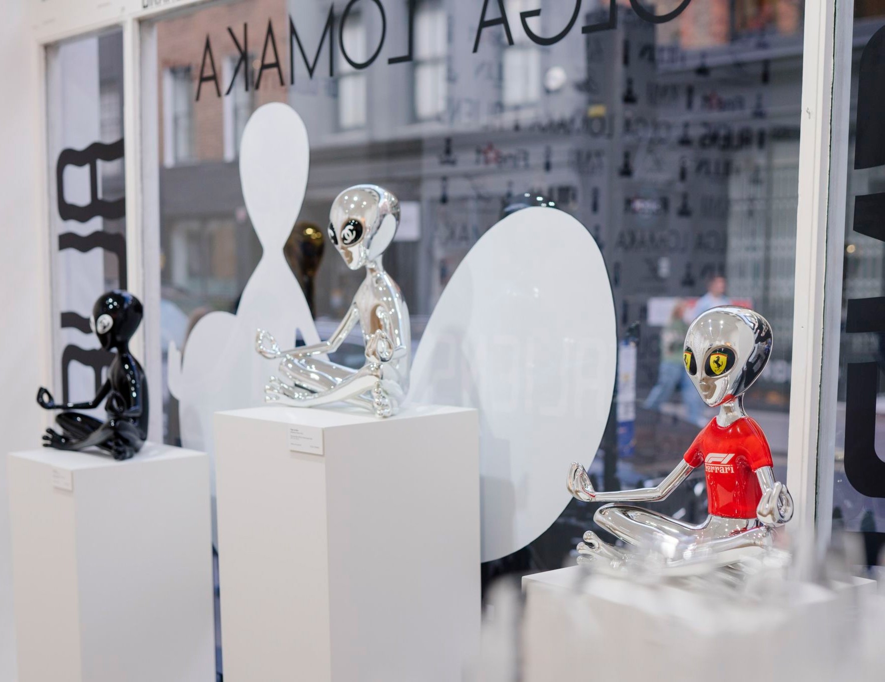 “Aliens” a captivating sculptural series by Olga Lomaka, delves into the profound concepts of human desire, the collective unconscious, and the sense of alienation through the lens of contemporary popular culture. Drawing inspiration from one of the most iconic narratives of science fiction — the arrival of extraterrestrial beings on Earth — Lomaka’s artworks challenge the traditional portrayal of aliens as fundamentally distinct from humanity. Instead, her alien creations mirror our own processes and ways of existence, embodying two contrasting states: screaming and meditation.
