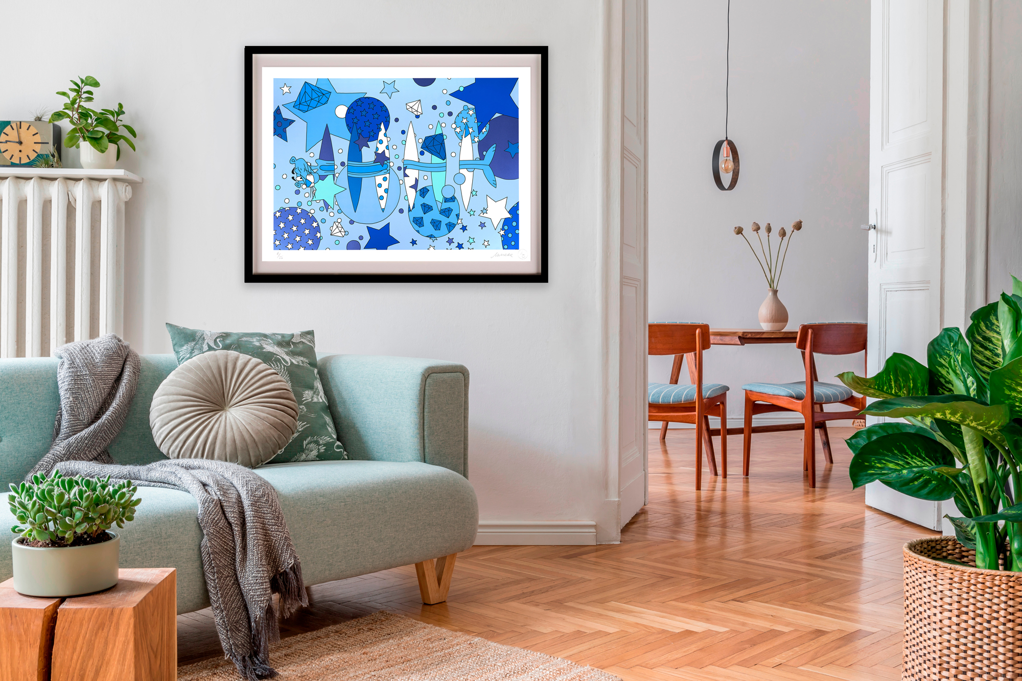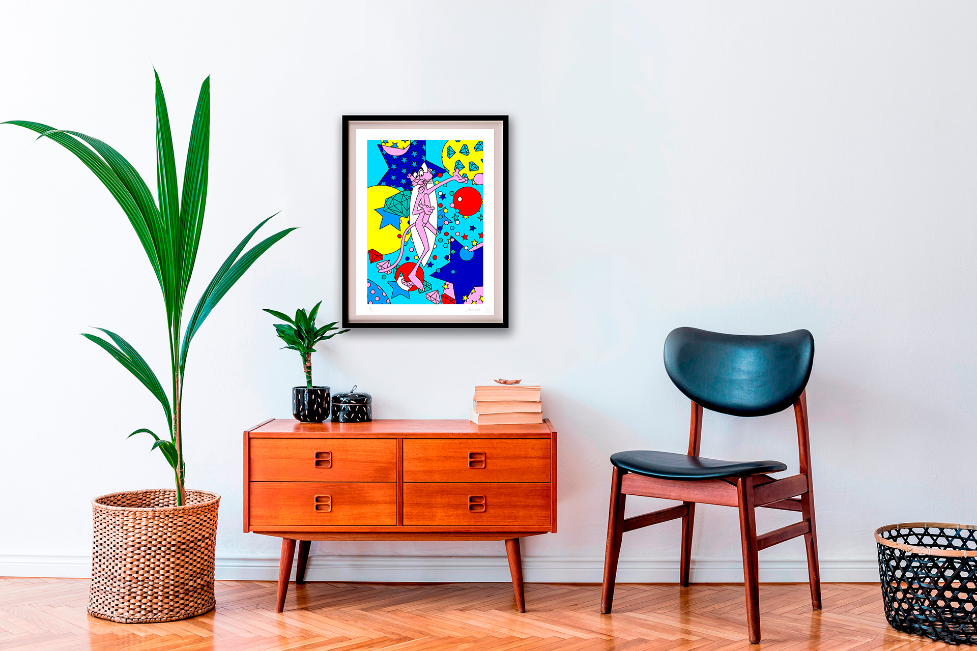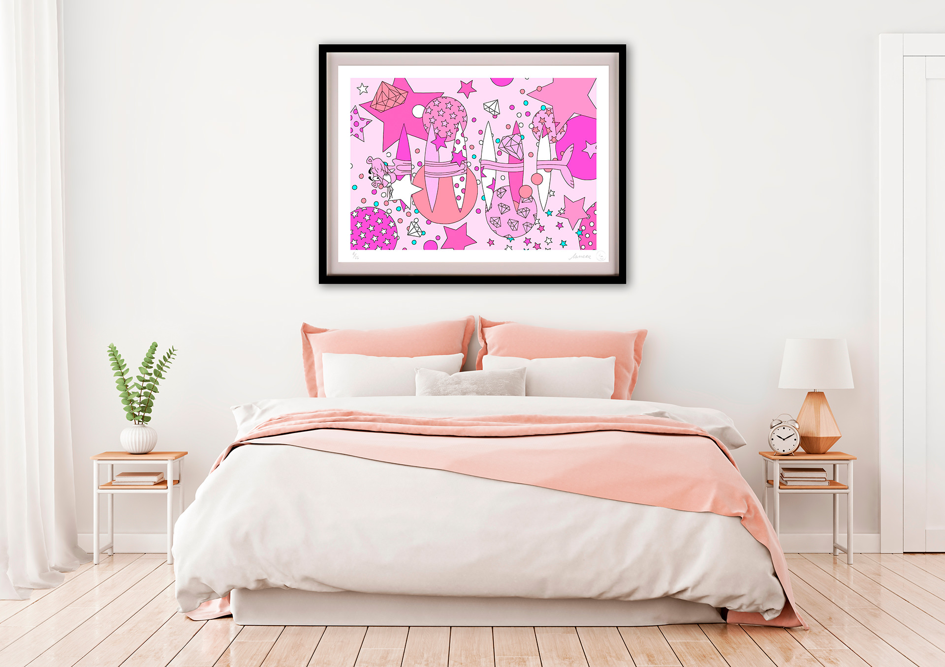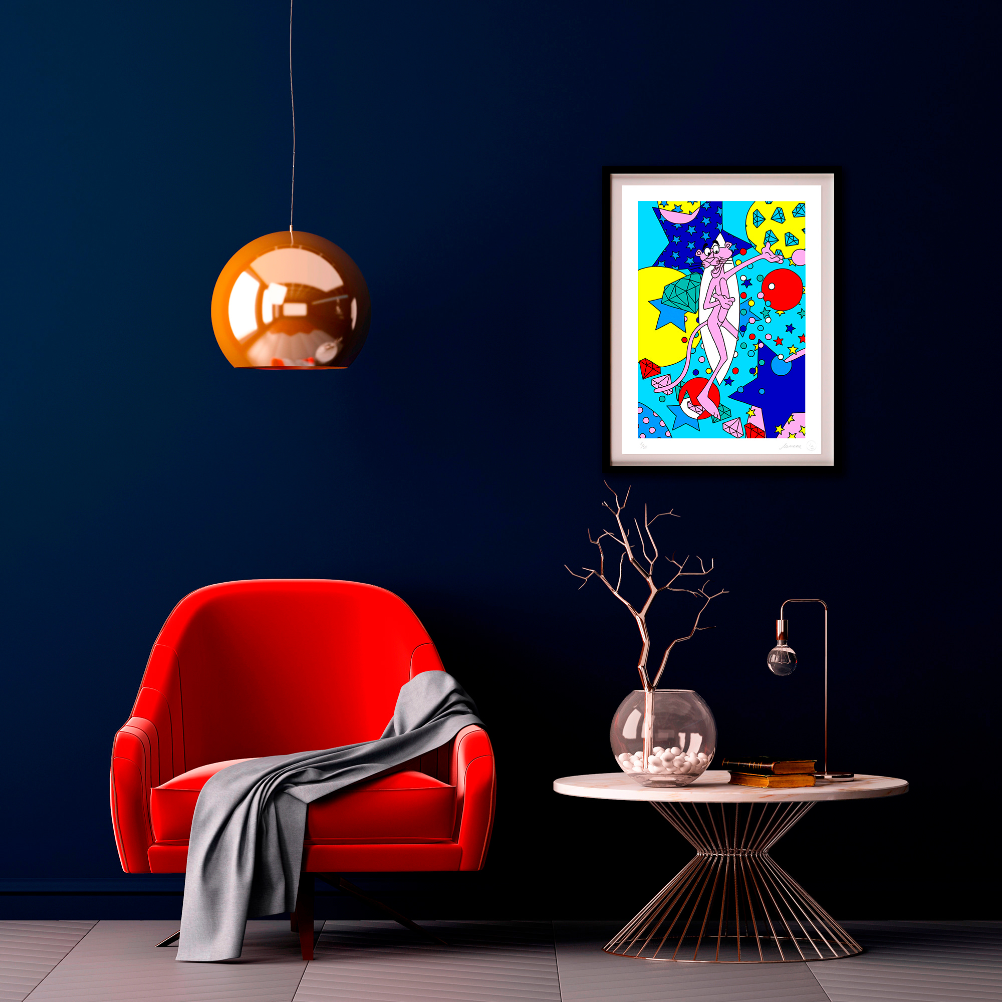 With her trademark pop of colour and little bit of pink panther star sprinkled magic, the new print series aims to lift our spirits by brightening even the gloomiest of galaxies. The patterned designs aim to play with perspective of what’s an illusion and what’s real, a common thread in Lomaka’s work.